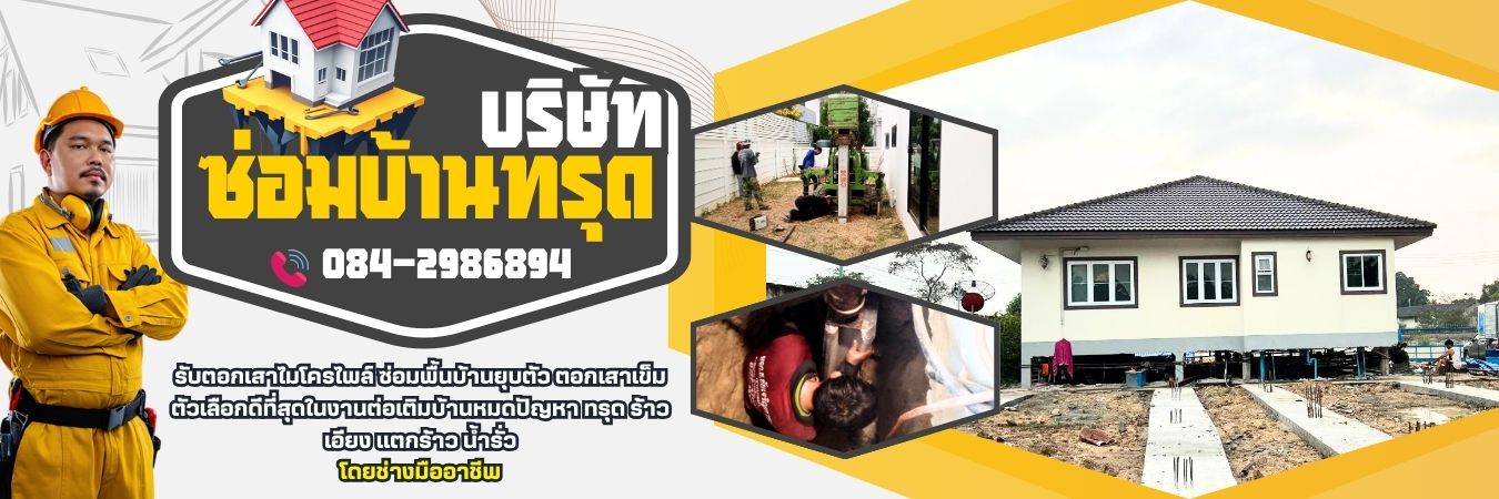 ซ่อมพื้นบ้านยุบตัว ตอกเสาเข็ม ตัวเลือกดีที่สุดในงานต่อเติมบ้านหมดปัญหา ทรุด ร้าว เอียง แตกร้าว น้ำรั่ว โดยช่างมืออาชีพ